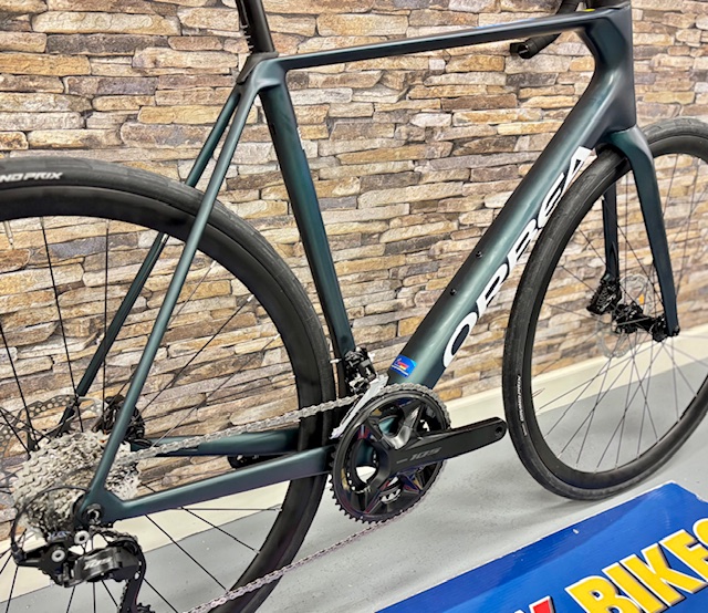 Orbea Orca carbon OMR 2026, monocoque construction, HS 1,5″, BB 386mm, powermeter compatible, Rear Thru Axle 12x142mm, thread M12x2 P1, internal cable routing.